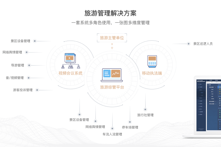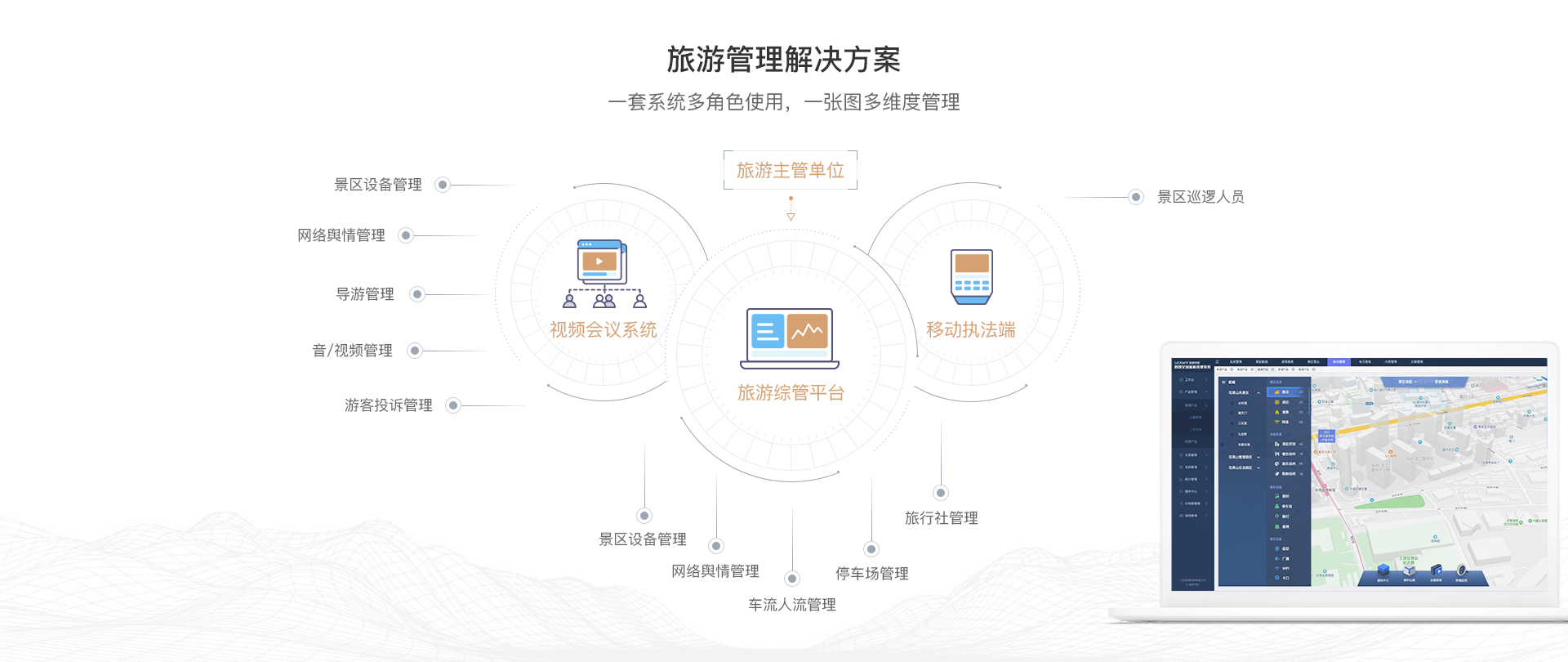 路通物聯是路通視信旗下專注智慧全域旅游領域的技術研發(fā)和落地運營公司。是擁有核心技術和自主知識產權并全面落地實施的 智慧全域旅游綜合解決方案供應商。多年來,公司立足市場和國策,依托互聯網、物聯網、大數據、云計算等新興技術,秉承“自 主研發(fā)、落地至上”的開發(fā)理念完成了“1+3+N”的產品構架,并長期為各省、市、區縣旅游局,旅發(fā)委、運營商、集成商提供優(yōu)質服務。